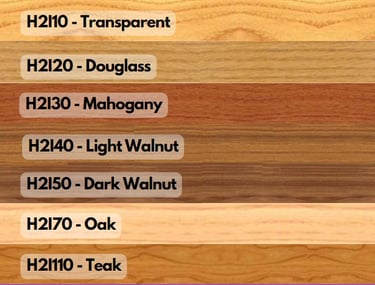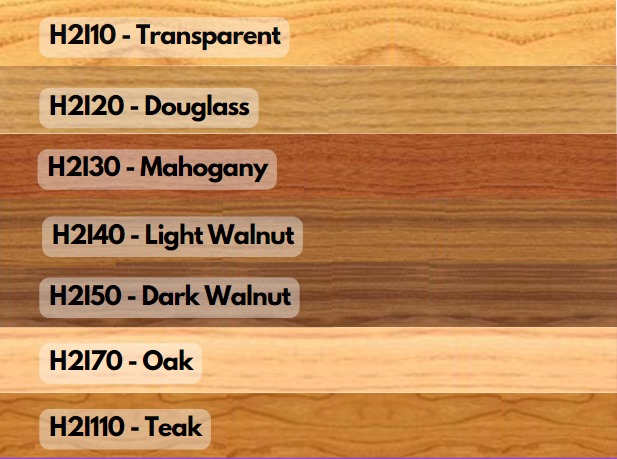 Vernici Egidio Milesi Waterbased Stain tersedia dalam banyak warna. VEM Waterbased Stains memiliki sifat penetrasi yang memungkinkan mereka meresap ke dalam pori-pori kayu. Sifat ini meningkatkan warna dan serat alami kayu.